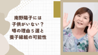 南野陽子さんは女優や歌手、タレントとして活躍し、今もなお多くのファンに注目されています。 そんな彼女のプライベートにおいて気になっている人は多いです。 今回は、 南野陽子さんに子供はいないのか 南野陽子さんに子供がいない理由について噂される...