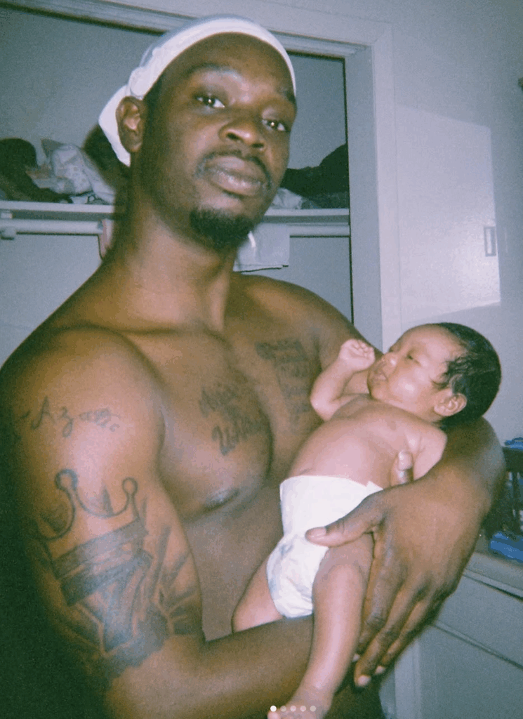 こちらの写真は、旦那さんが生まれた長女(トヨミ・ジャミラさん)を抱いている写真です。