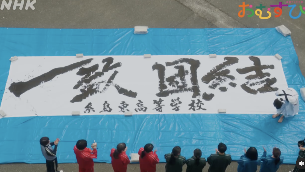 NHKの『おむすび』のインタビューでは、横断幕へ筆を乗せた時の思いを語っていました。