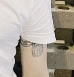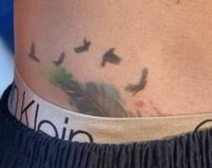 彼のタトゥーは、左腹部に『蝶』、右の腹部に『羽と鳥』と左腕に『ⅠⅡⅦ(127)の入った南京錠』が入っています。