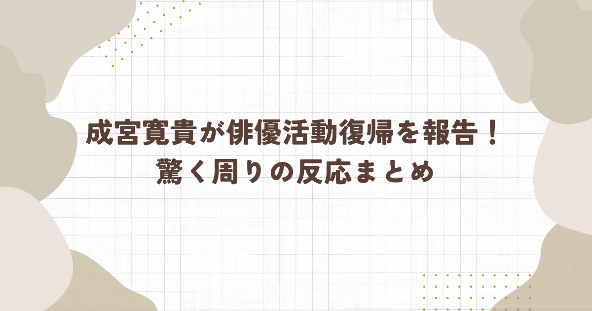 成宮寛貴の俳優活動復帰を聞いた驚く周りの反応まとめ