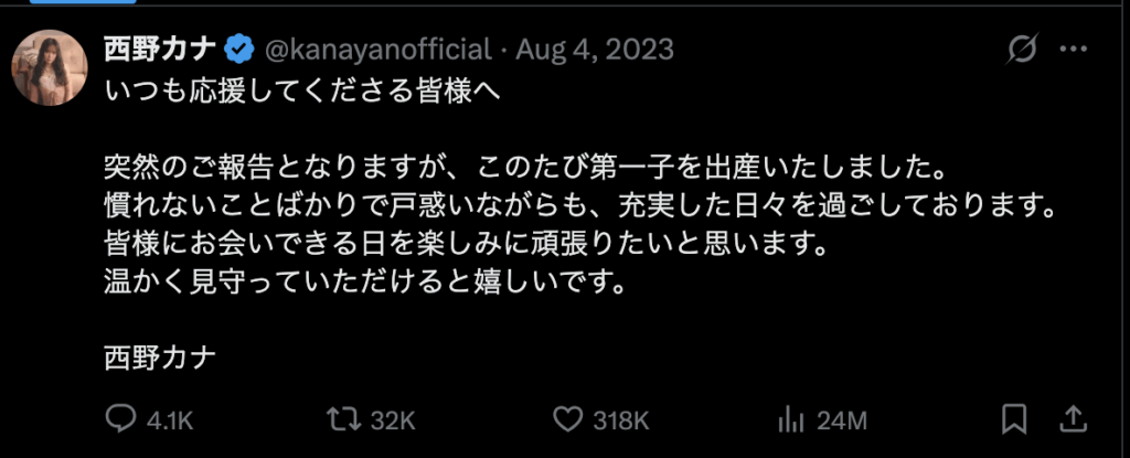 今回は2024年6月25日に公式に活動再開を再開した西野カナさんの、