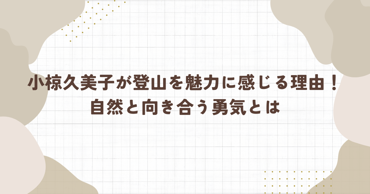 小椋久美子さんは、登山を通じて心の平穏と自己成長を感じてきたようです。