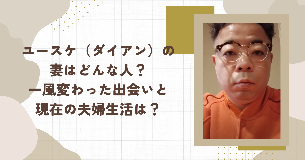 今回は、ダイアン・ユースケさんの奥さんや二人の出会い、現在の夫婦生活についてご紹介しました。