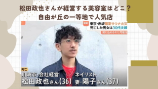 12月16日に東京赤坂の個室サウナ店「サウナタイガー」で火事が起きました。 発火した際、個室のドアノブは外れ、非常ベルも作動せず、中にいた男女が焼死した事件がありました。 亡くなった松田政也さんは、美容室の経営者でした。 36歳という若さで...