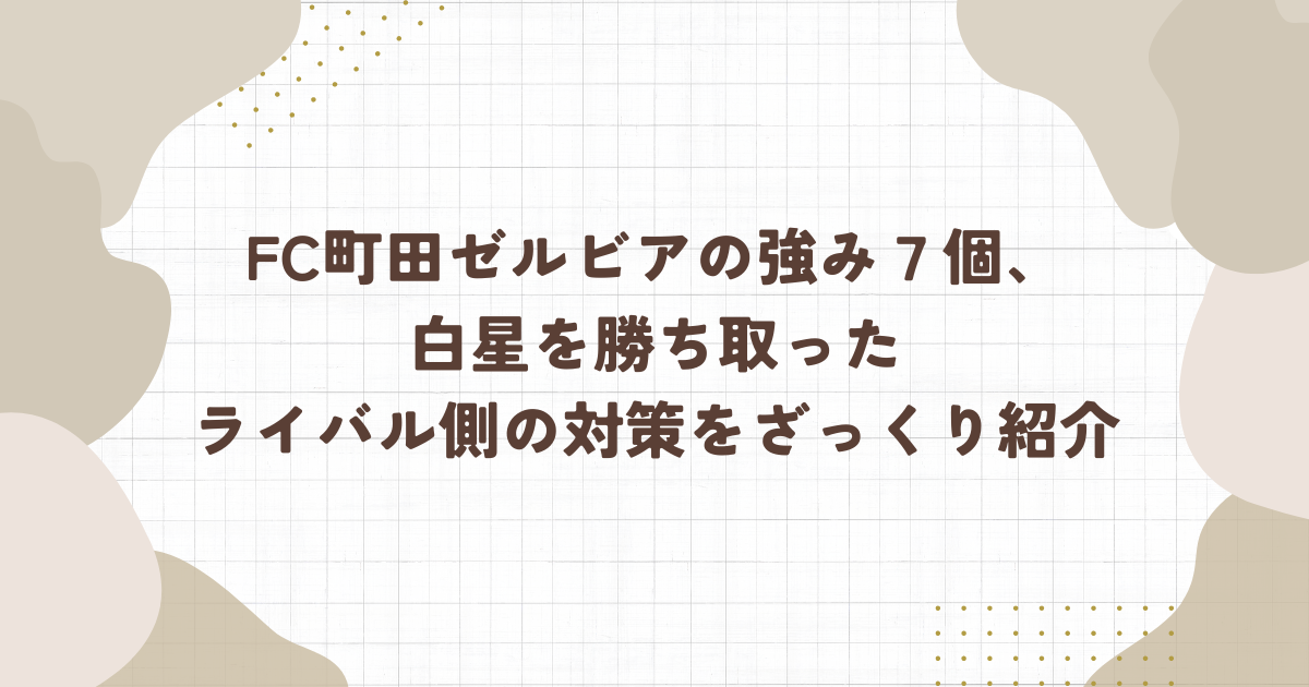 今回はJ1になって勝利の流れに乗っているFC町田ゼルビア(以降、ゼルビア)の強み7個を紹介。後半では、ゼルビアから白星を勝ち取った3つのライバルがとった対策をざっくり紹介。
