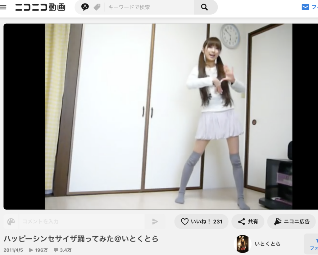 動画投稿サイト・ニコニコ動画では、『ハッピーシンセサイザ踊ってみた@いとくとら』が1番の人気動画になっており、再生数は約200万再生を記録しており、とても人気があります。