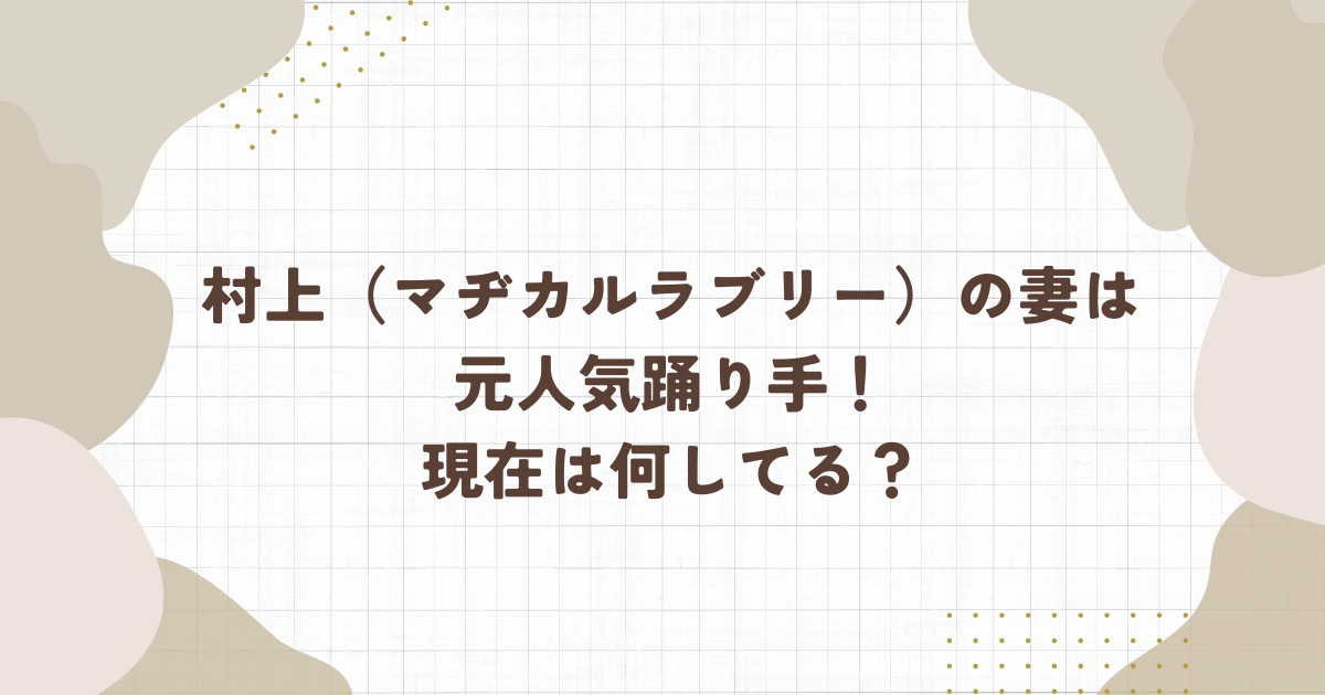 今回は、マヂカルラブリーの村上さんの妻が誰なのか、また2人には子供がいるのか、妻は現在仕事をしているのかなどをまとめてみました。