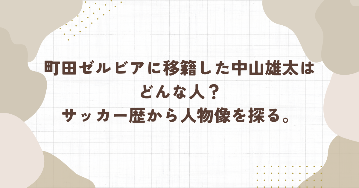 2024年8月にFC町田ゼルビアに移籍した中山雄太さんはどのような方なのか、サッカー歴から人物像を見てきました。