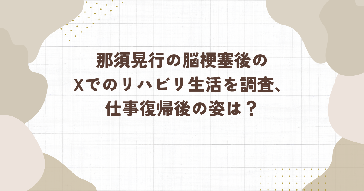 今回は去年12月に脳梗塞を発症し、今年4月4日の「ラヴィット」で見事仕事に復帰された那須晃行さんのリハビリ生活を那須晃行さん自身のXやインスタグラムなどを使って調べてみました。