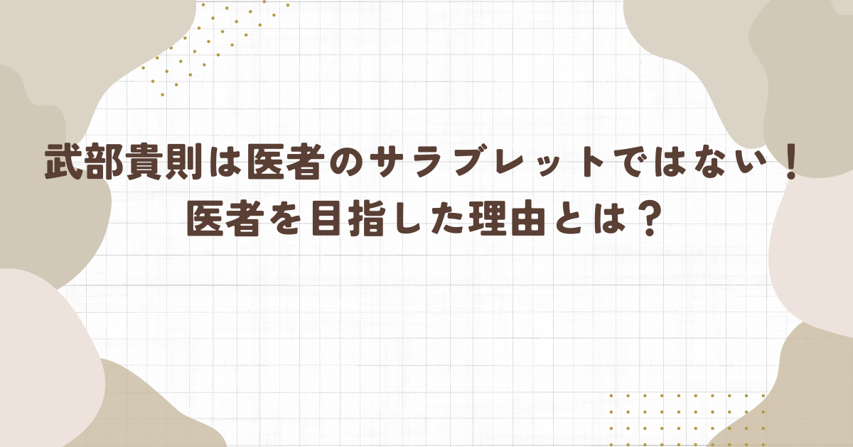 確かにご両親は医者ではなく、純血の医者のサラブレットではないものの、武部さんの頭の良さの片鱗が窺わせる経歴なのではないでしょうか。