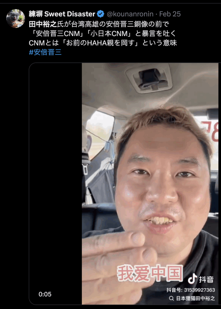 今回は、台湾で中国国旗を掲げ「台湾は中国のものです」などと発言し、台湾のセンシティブな部分に触れ強制退去となった、日本人(?)田中裕之さんについてまとめてみます。