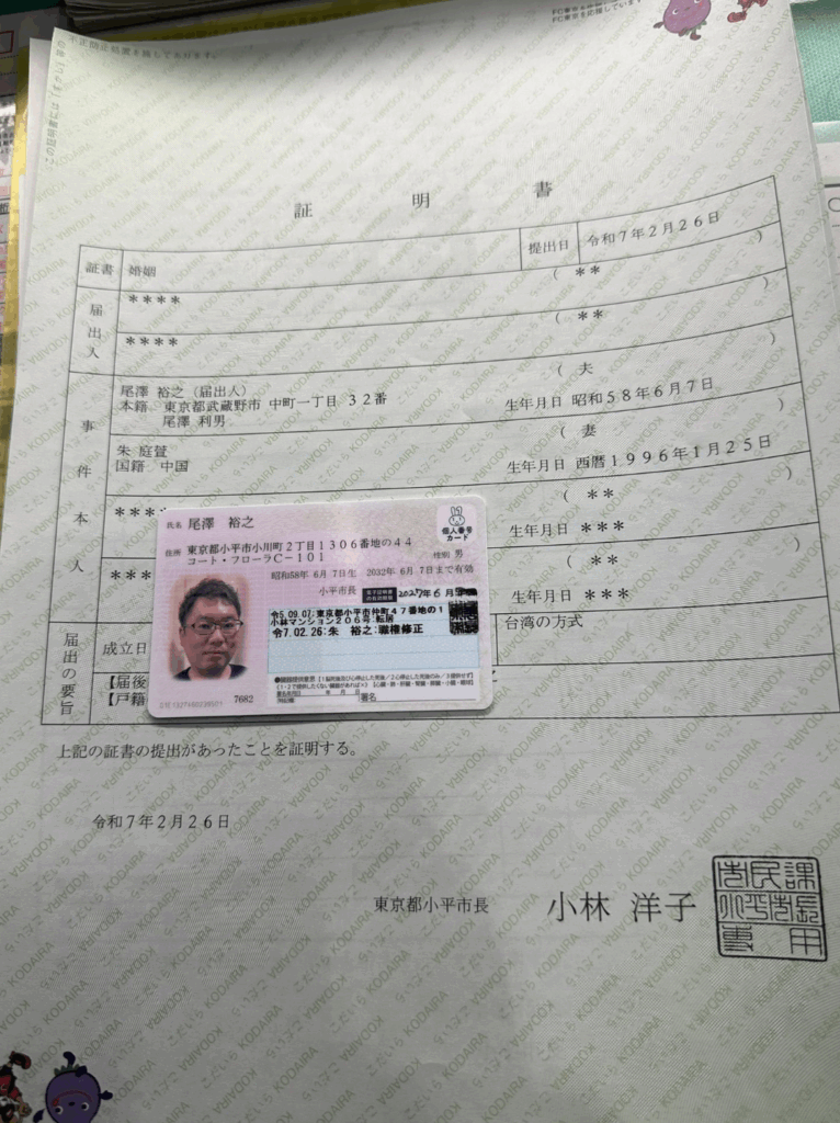 中国国籍の奥さんと結婚しており、日本人だけど中国人として帰化したとも言えます。