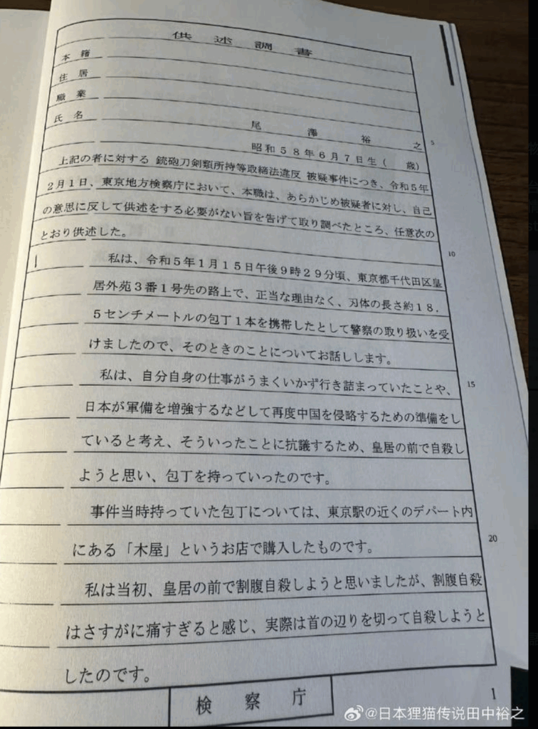 こちらは、田中さんが過去に犯したと言われる調書です。