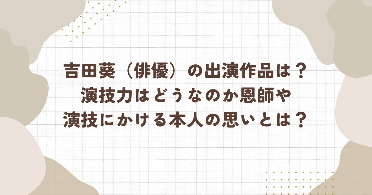 現在放送中のNHK総合ドラマ10「家族だから愛したんじゃなくて、愛したのが家族だった」で日本で初めてダウン症の俳優として主人公の弟役を演じる吉田葵さんの出演作品や演技力について恩師や演技に対するご本人のを調べてみました。